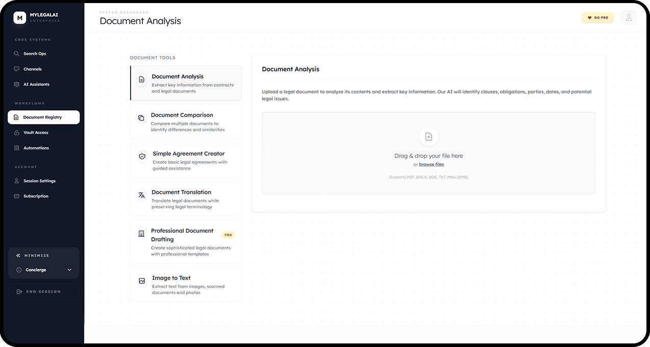 Streamline your legal workflows, automate research, and unlock powerful insights with AI built for modern legal professionals.